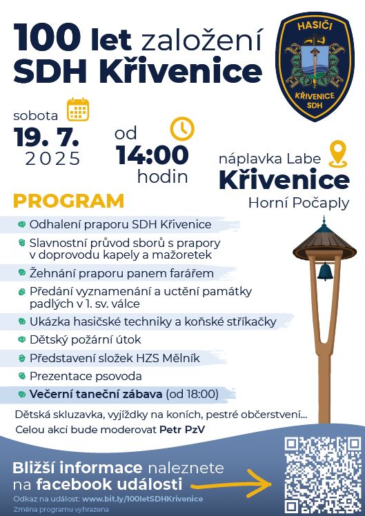 Velká sláva našich hasičů v sobotu 19. 7. 2025 od 14:00 hod. na náplavce v Křivenicích