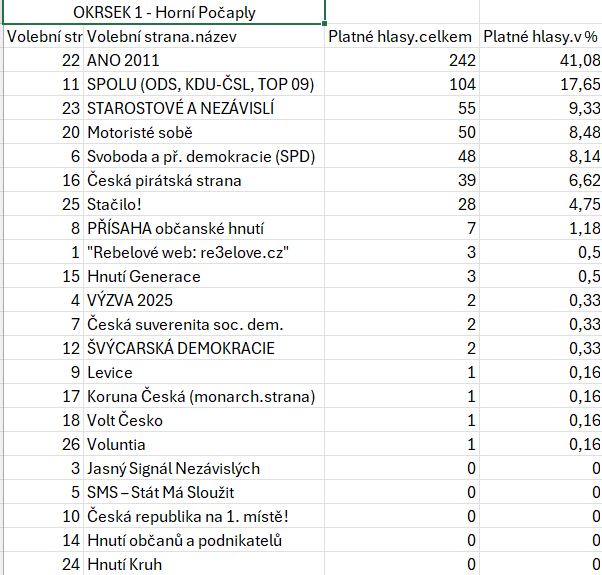 Horní Počaply výsledek voleb
